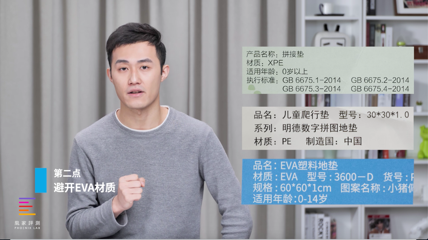 拼接式爬行垫主要有XPE、EPE和EVA材质,一般在产品包装和商品详情里都可以找到。