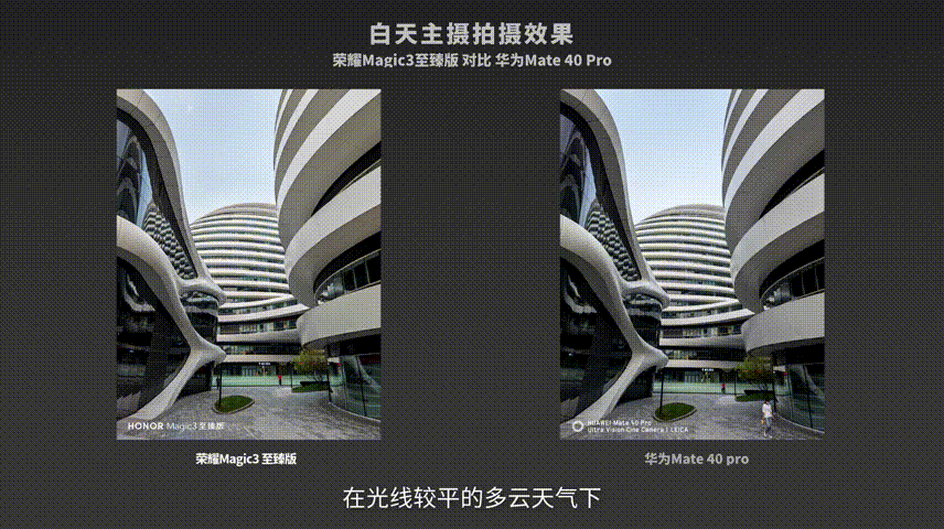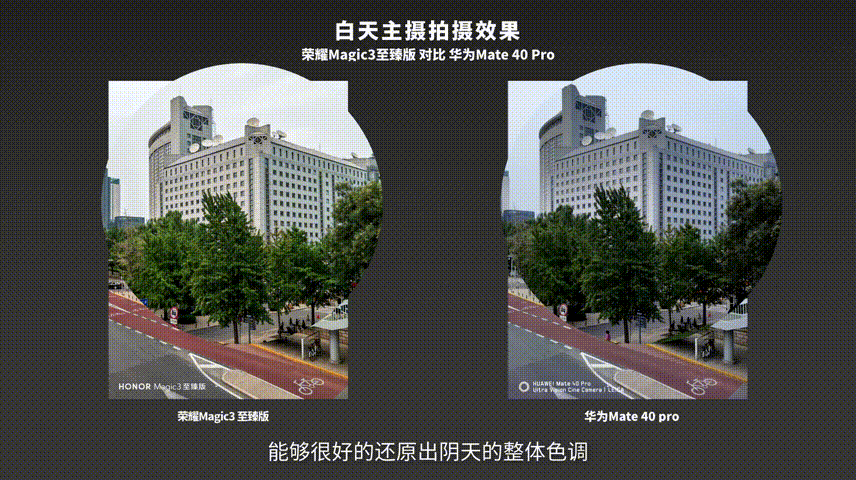 在光线较平的多云天气下,Magic3至臻版的整体风格偏向还原真实色彩,画面清晰锐利,在整体色彩调节上与华为Mate40 Pro没有太大的差距,如果不看水印,很难 肉眼区分开来。