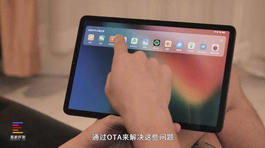 经过这段时间的使用,我们觉得这次小米平板5 Pro 首先在系统上,桌面图标之间较大的空隙降低了桌面空间的利用率,尤其是竖屏显示时第一行软件上面的空隙甚至可以再放一行软件。图标之间不合理的间隔也直接导致了桌面小插件的奇怪排列。