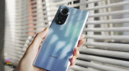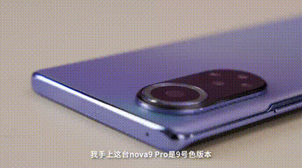 我们手上这台nova9Pro是9号色版本,后壳表面采用了比较特殊的磨砂工艺,远看就是淡淡的蓝色,近看的话,磨砂颗粒会有炫丽的闪烁效果,不过很轻微,没有特别艳丽。