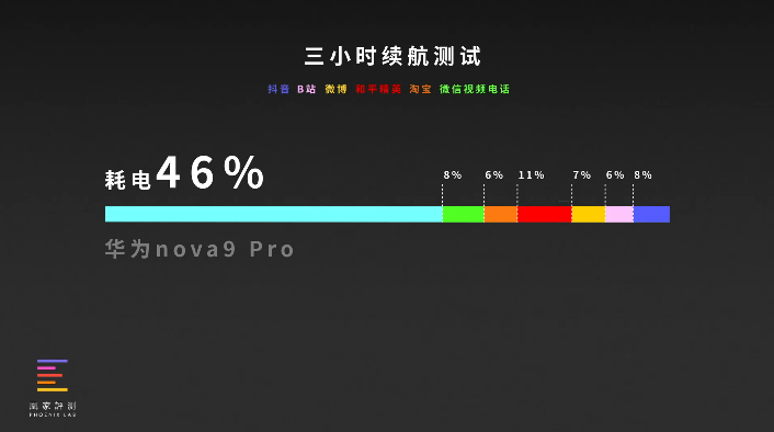 经过凰家评测三小时续航模型测试后,总耗电46%,属于中等表现。