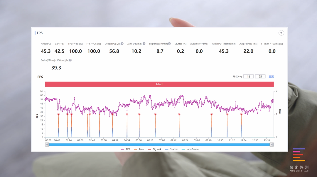 最高画质的原神,跑一跑璃月港,打一打丘丘人,平均帧数45.3,帧率波动42.5。
