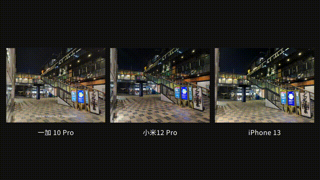 到了晚上,依旧是这个经典的考验宽容度场景,在普通夜景模式下,一加对高光的压制和暗部细节的保留上三者中最好,但观察地砖,画面涂抹有些严重,小米整体表现不错,但暗部细节丢失严重,iPhone则在高光以及暗部细节的处理上都有问题。