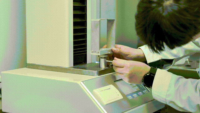 所幸,凭借朋友的帮助,我们找到了这台特殊的拉力仪。它是在普通拉力仪的基础上,重新建模制作了一个卫生棉条专用头,这样就能够测试卫生棉条拉绳的强度大小,来检查棉条的线头会不会不够结实而拔不出来。