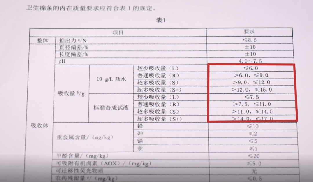 所以说,棉条的吸收量过大,并不代表着一定就好,甚至可能有风险。世界范围内的棉条国标都对不同型号的吸收量有着要求,这个要求是个区间值,而不是简单的吸的越多越好。