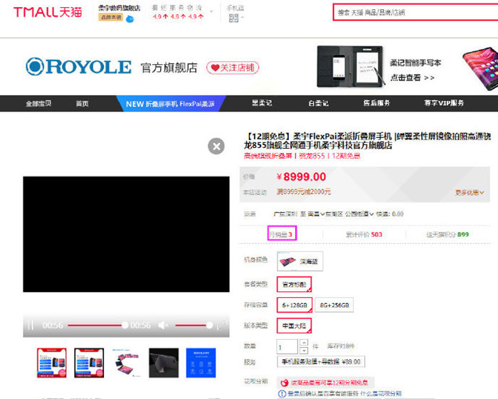 在我看来,柔宇在折叠屏手机市场存在感较低,原因在于销量十分惨淡。数据最具说服力,柔派上市11个月时,其天猫官方旗舰店月销量仅为212台,累计评价475个,真是惨不忍睹,全网销量也高不到哪里去,与三星、华为十万级销量相差甚远。