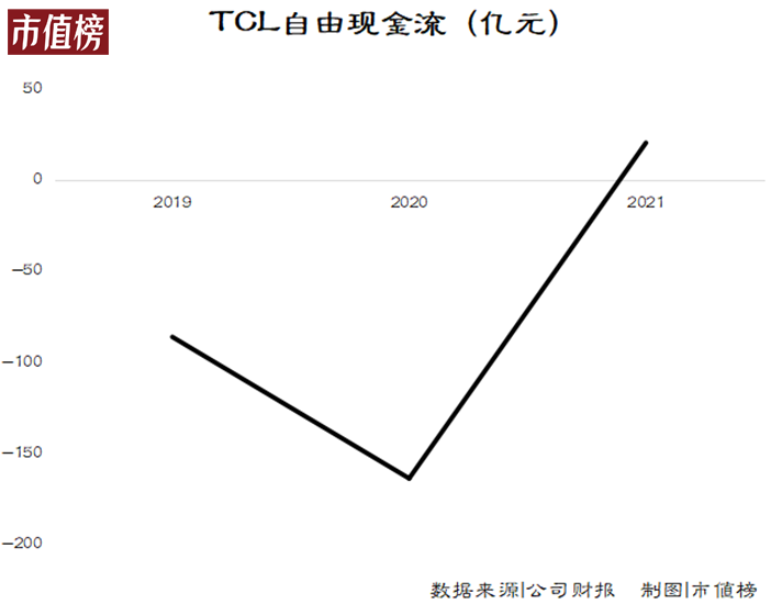 从2019年到2022年第一季度,TCL只有2021年这一个年度,实现了正向的自由现金流(经营活动现金流净额-资本性开支),京东方也是从2012年开始首次实现自由现金流为正。