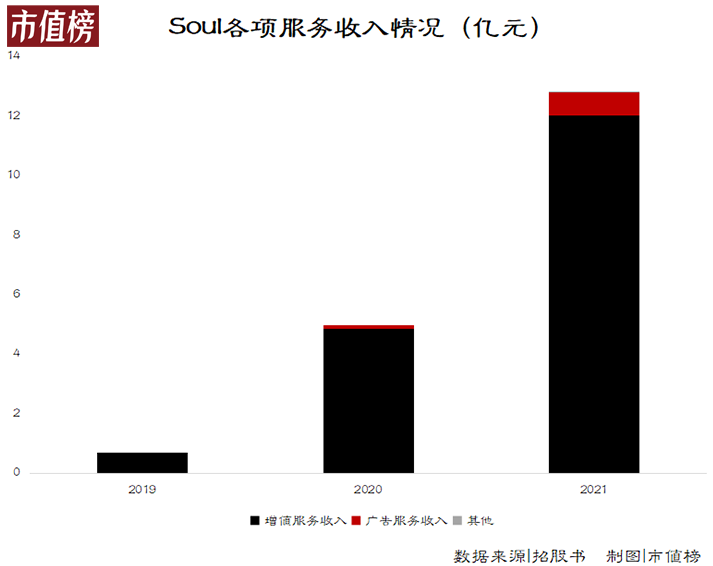 2019年-2021年,Soul分别实现了0.7亿元,4.98亿元和12.81亿元的收入。