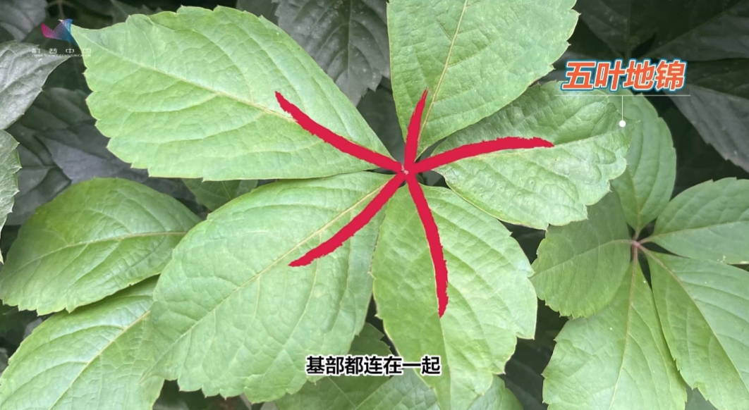 而且呢,五叶地锦是掌状复叶,每片叶子一般都有 5 枚小叶,基部都连在一起,有点像人的手掌。
