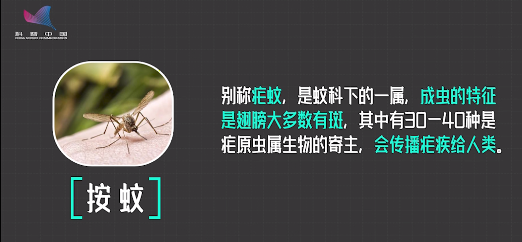在诸多蚊子中,只有蚊科昆虫的雌虫,在繁殖期才会吸食人类血液。而这些吸食血液的蚊子也都可以作为媒介传播疾病,比如按蚊又称疟蚊,是疟疾传播的唯一媒介;