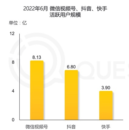 而截止到2022年6月,根据QuestMobile数据,视频号的活跃用户规模已经超过抖音、快手达8.13亿,位列短视频赛道第一。