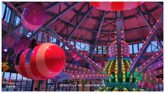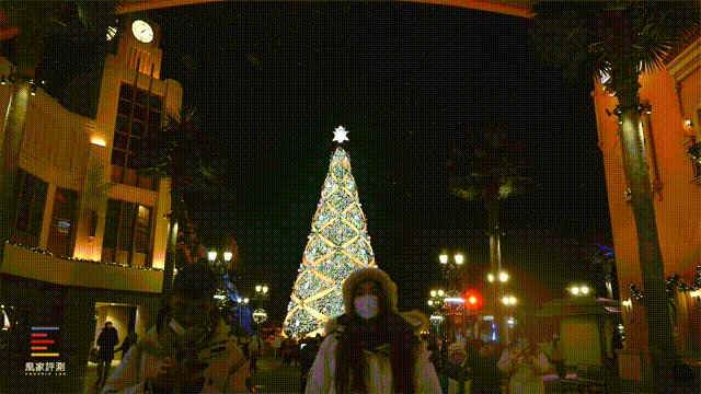 而第四点,正好就是 拍照 。圣诞期间的环球影城加了很多像圣诞花环、圣诞树这种色彩丰富浓郁,非常适合打卡拍照的地方,Find N2的 IMX890主摄+哈苏自然色彩+马里亚纳X芯片 的三层buff加持,即便是晚上灯光亮起这种复杂光线,都能收获非常满意的人像照片。