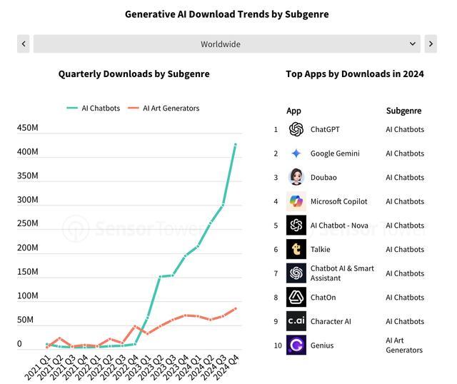 IT之家 1 月 23 日消息,根据移动应用分析机构 Sensor Tower 当地时间周三公布的最新数据,2024 年全球手机用户为 AI 聊天机器人和 AI 艺术生成工具花费的金额达到 12.7 亿美元(IT之家备注:当前约 92.42 亿元人民币)。