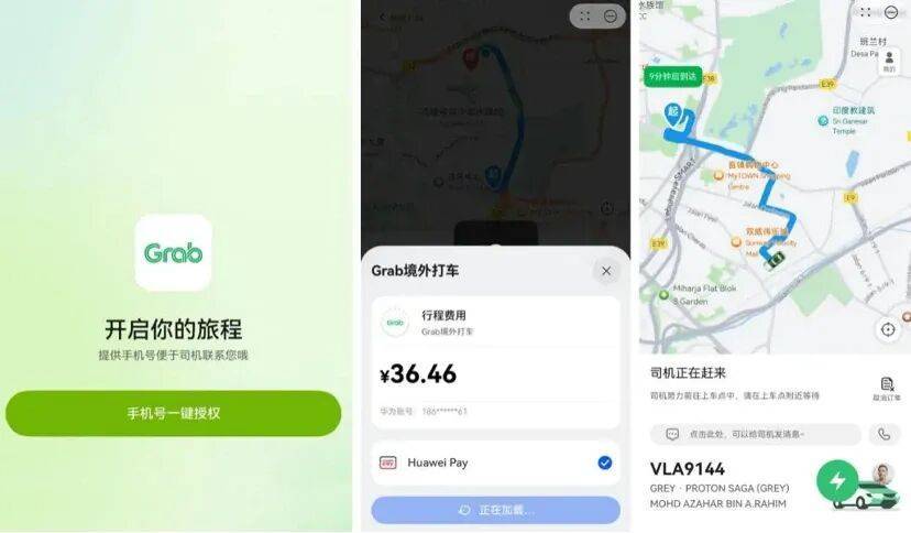 Grab 在接入鸿蒙元服务后,已实现华为账号一键登录、小艺语音唤醒、司乘中文沟通及人民币线上支付等功能