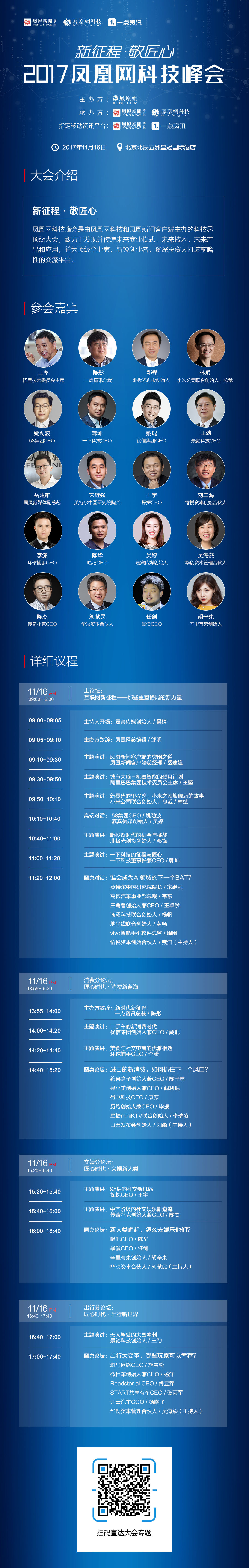 2017凤凰网科技峰会是由凤凰科技和凤凰新闻客户端主办的科技界顶级大会,致力于发现并传递未来商业模式、未来技术、未来产品和应用